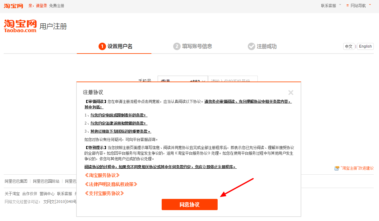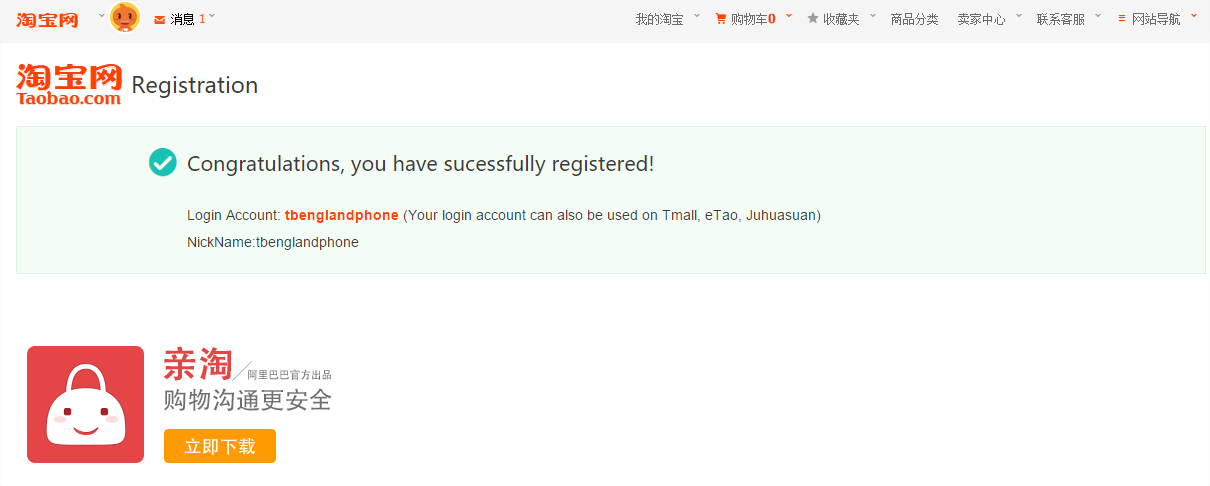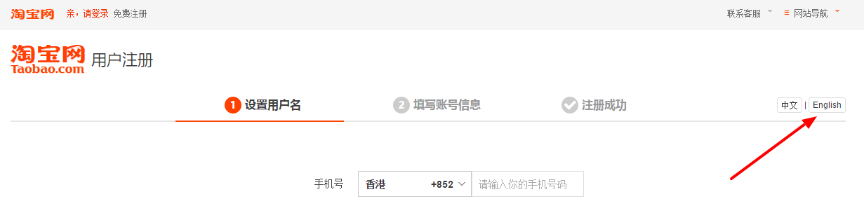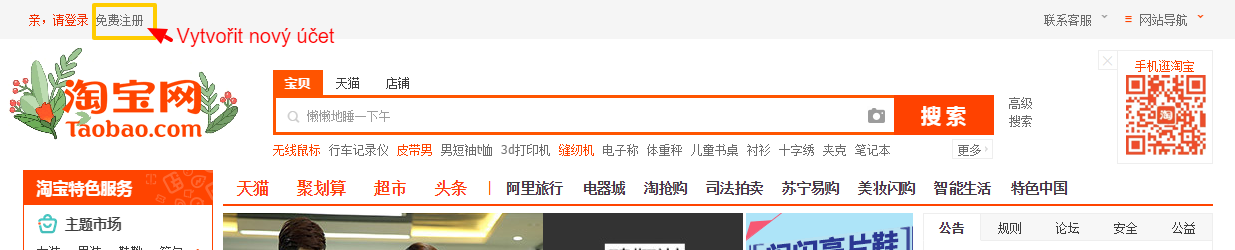 Registrace na Taobao.com